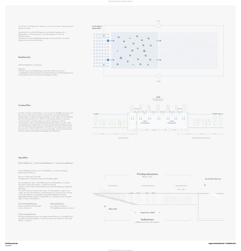 So entsteht sauberes Wasser, das direkt in den Speicherbereichen gehalten werden kann und gleichzeitig als öffentlich zugängliches Badewasser dient